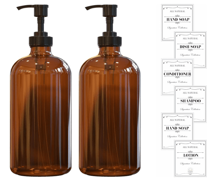Nothing kills the vibe faster than a lineup of mismatched, half-empty bottles. Get that sleek, hotel-spa look with glass soap and shampoo dispensers. Opt for labeled amber or matte black versions to keep it chic.