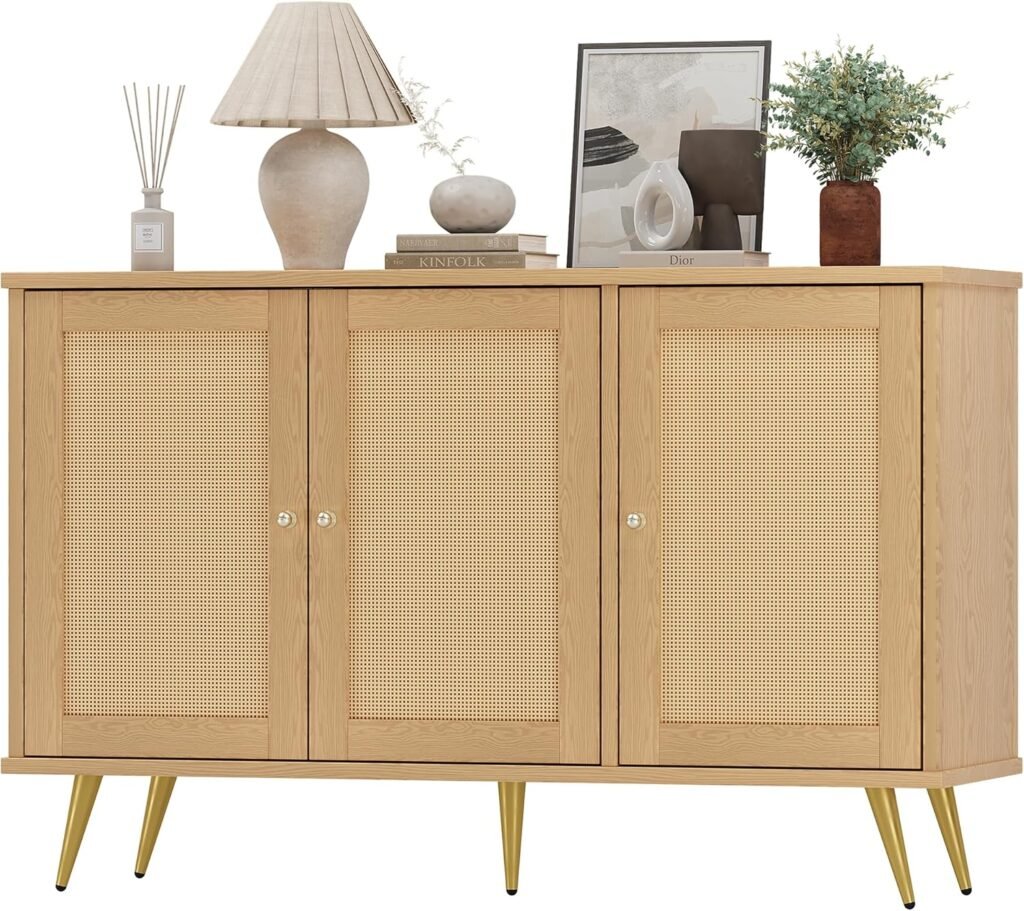 Accent Large Storage Space Cabinet with Rattan Decorated Doors