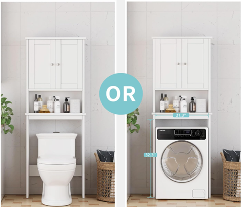 Customer review: “This is a nice solid over the toilet cabinet. I like how it was easy to build (I took my time, took about a hour.