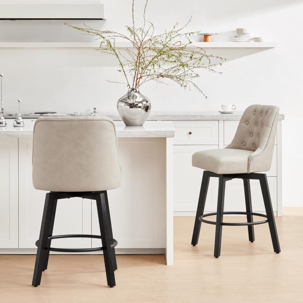 Counter height Swivel Barstools with Back, Beige Leather, Set of 4