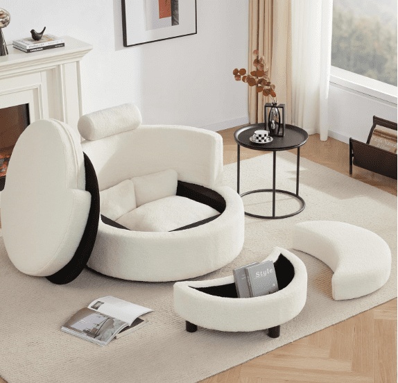 This stylish sherpa chair with a hidden storage ottoman is the perfect blend of comfort and functionality for any space.