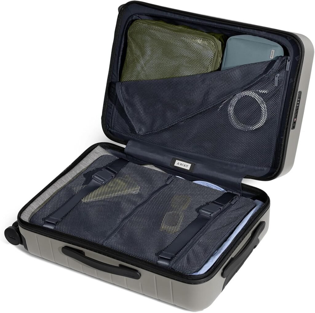 The Away Everywhere Carry‑On solves this with a laptop‑compartment that’s built into the structure, not just a sleeve stuck on the side. It holds your laptop, a 1‑inch binder, a power bank, and a thin folder, all in a layout that distributes weight evenly when you’re dragging it through the airport.