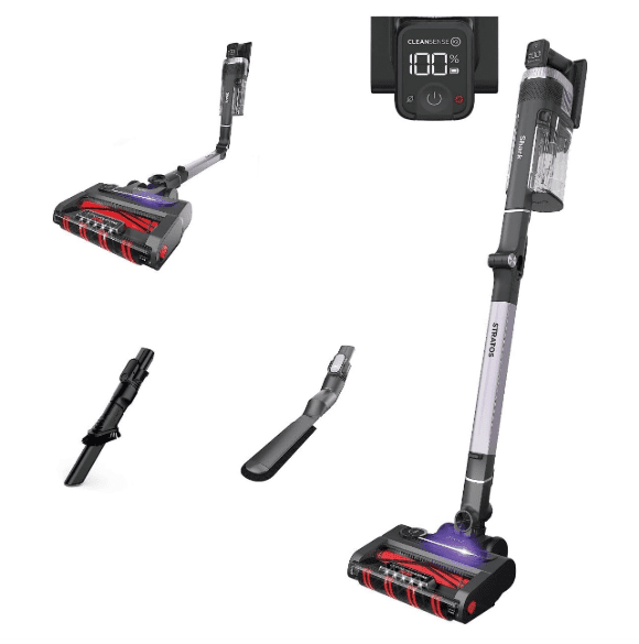 The Shark Stratos Cordless offers powerful suction, a self-cleaning brush roll to prevent hair wrap, and an Anti-Allergen HEPA filter. It’s a fantastic budget-friendly alternative to Dyson.